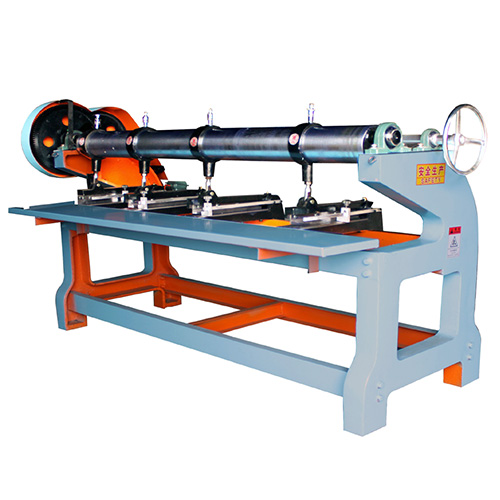 四联开槽切角机由品牌电动机驱动,通过皮带轮及齿条传动曲轴连杆机构运动,安装在上刀座上的刀片在连杆的带动下,上下运动而裁切纸板,完成开槽及切角的功能。